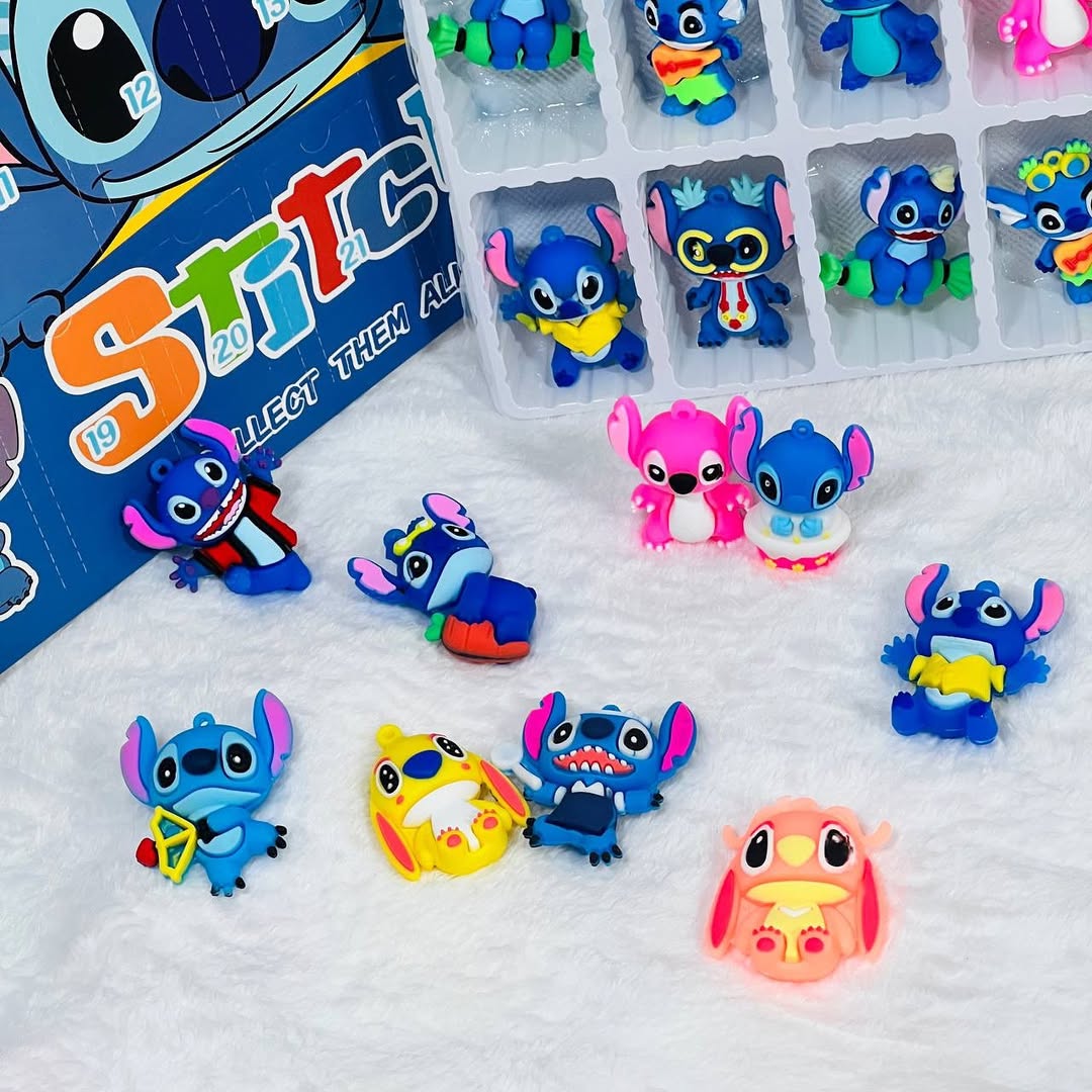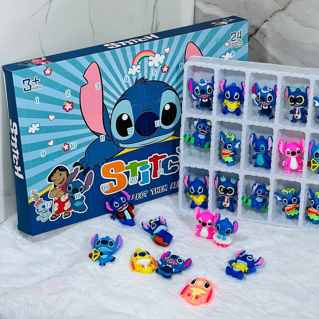 Descubrí la emoción del Calendario de Adviento – Colección Sorpresa con 24 sorpresas únicas inspiradas en tus personajes favoritos. Disponible en 3 versiones: Labubu, Stitch y Capibara, cada calendario incluye figuritas coleccionables de alta calidad que revelan un nuevo detalle día a día. Perfecto para fans y coleccionistas que quieren disfrutar de la magia de la temporada.