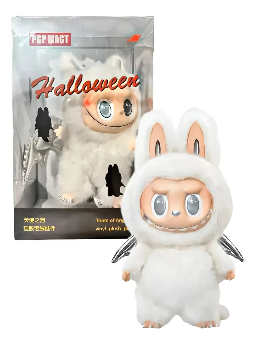 Coleccioná y disfrutá de este exclusivo muñeco Labubu Halloween Angel Zimomo. Fabricado con cuerpo de felpa suave y detalles en vinilo de alta calidad, incluye alas brillantes y aro metálico para usar como adorno, llavero o accesorio de colección. Ideal para fanáticos de los Labubu y para quienes buscan piezas únicas con diseño original.