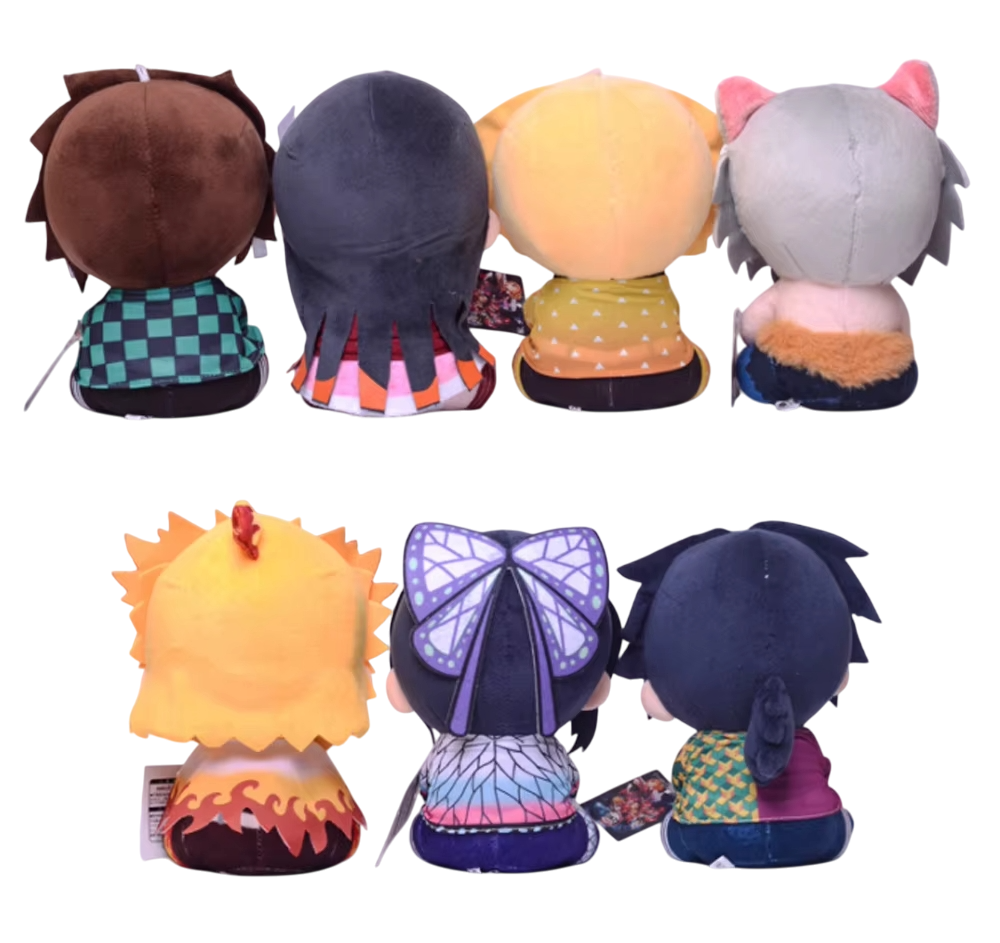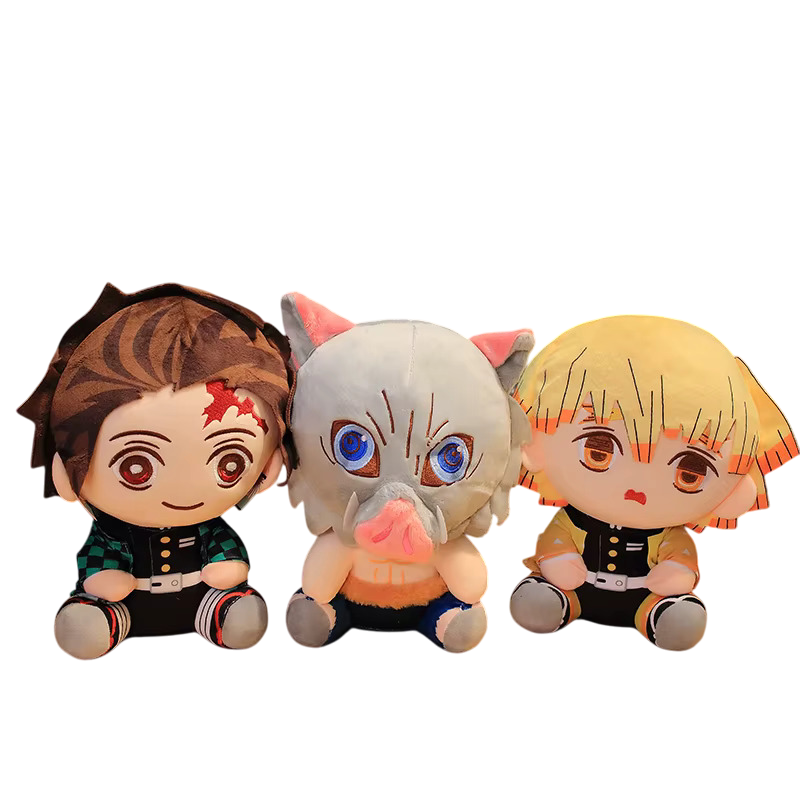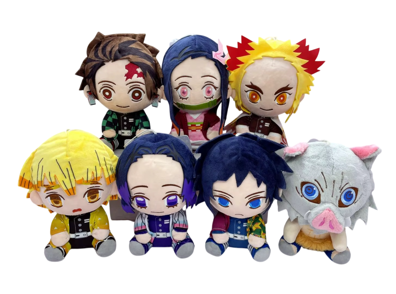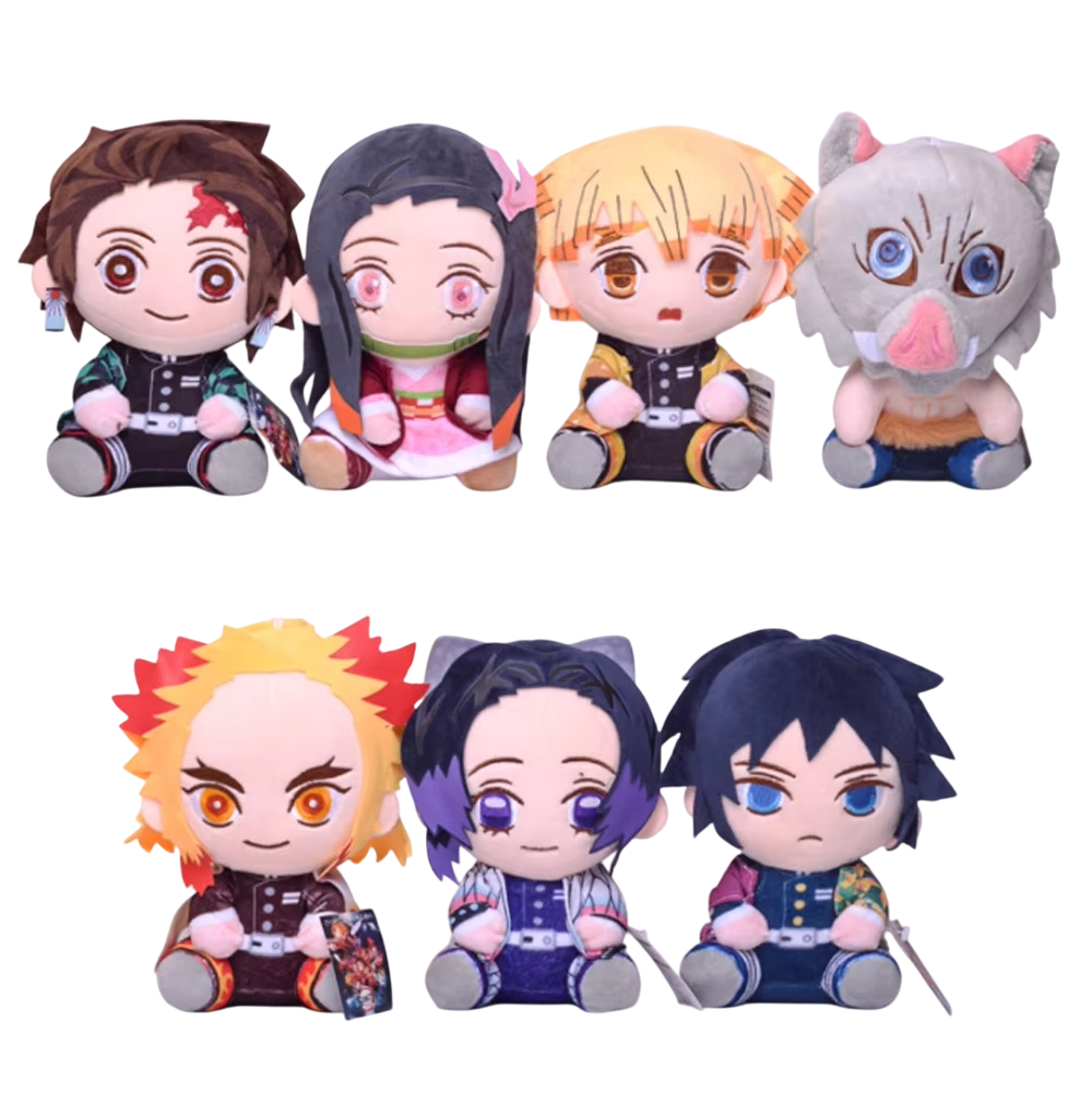 Coleccioná y disfrutá de estos peluches del anime Demon Slayer. Realizados en felpa suave con detalles bordados, ideales para fans y coleccionistas. Incluyen personajes icónicos de la serie como Tanjiro, Nezuko, Zenitsu, Inosuke, Rengoku, Giyu, Shinobu, entre otros.