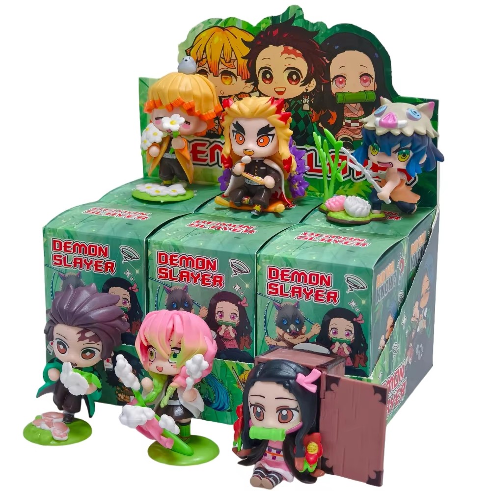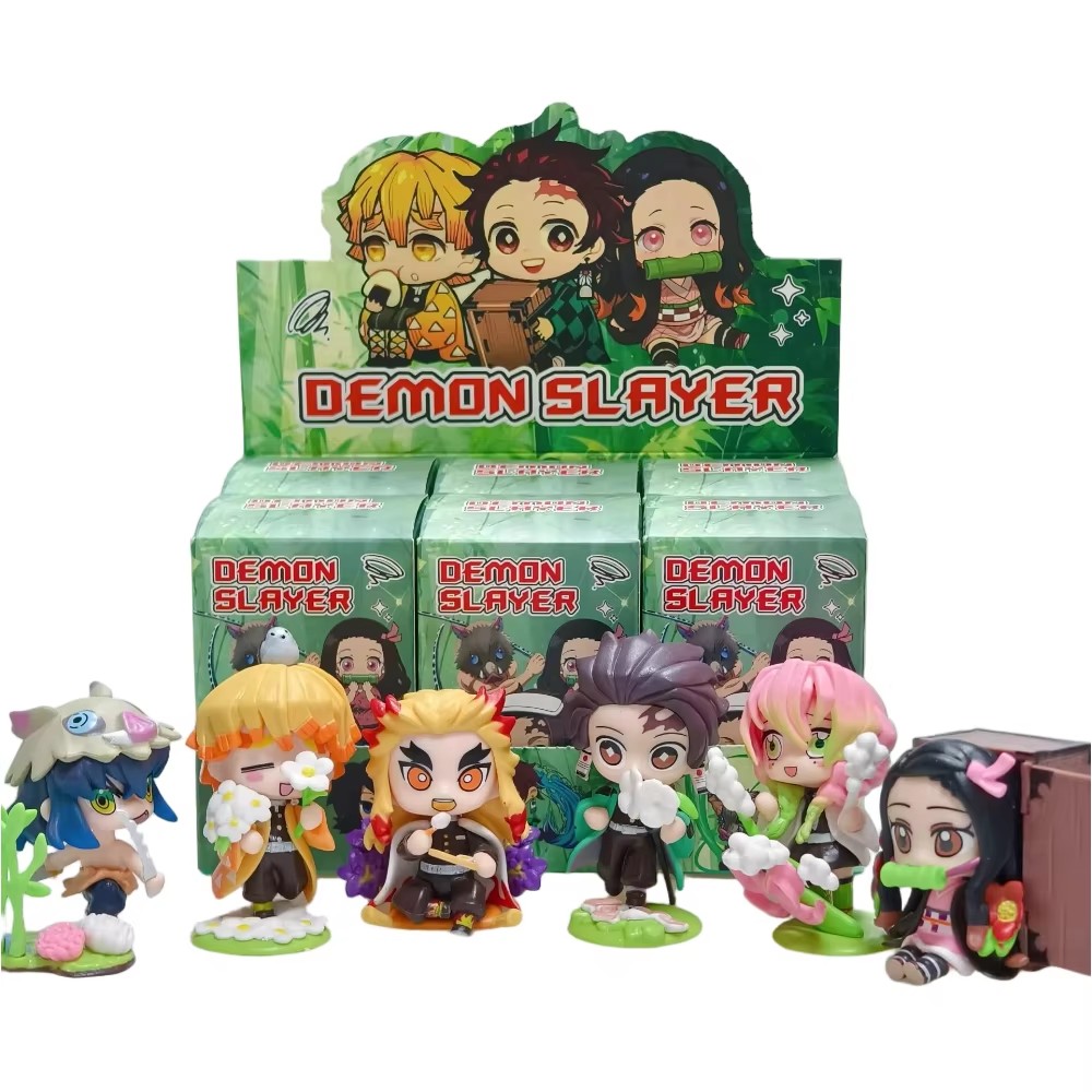 Set de figuras coleccionables de Demon Slayer (Kimetsu no Yaiba) en formato chibi, con detalles únicos y coloridos. Incluye 6 personajes principales en versión miniatura, ideales para coleccionistas, fanáticos del anime o para decorar cualquier espacio.