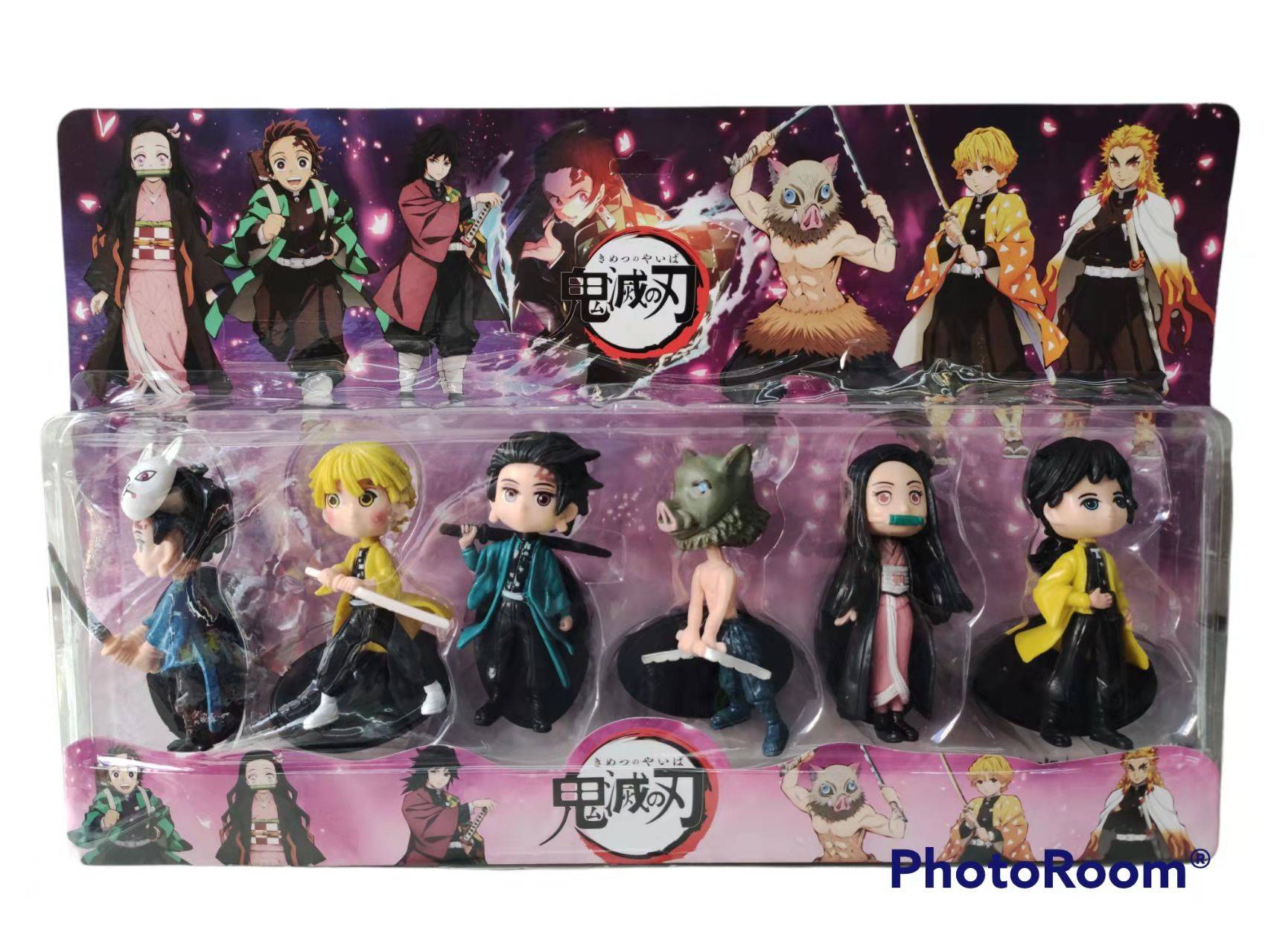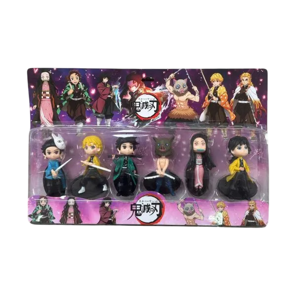 Set blister con 6 figuras inspiradas en Demon Slayer (Kimetsu no Yaiba). Cada personaje incluye su base individual para poder exhibirlo.